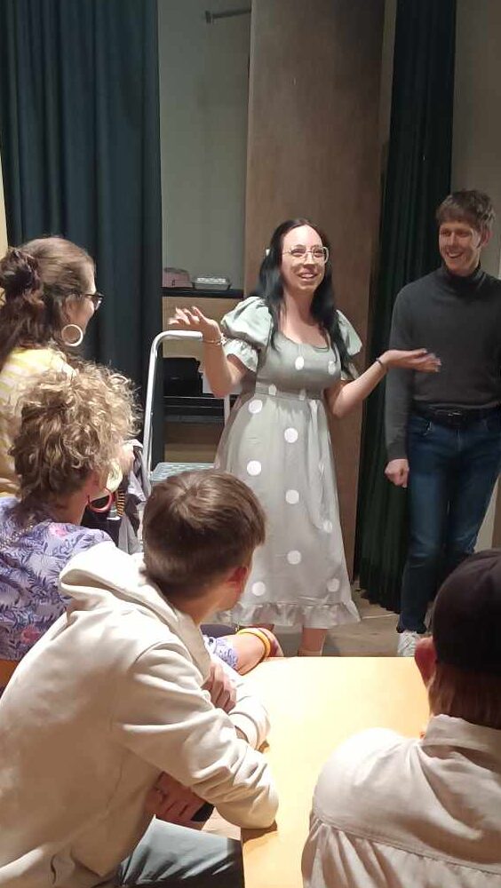 Na jevišti se ocitla už jako malá – nejdřív v loutkách jako skřítek, ke kterému si ještě sama dabovala hlas. Později přišel dramaťák, kde se chopila třeba role svatého Petra. Tedy ano — prošla si érou „hraju pohádkové postavy a vše, co se zrovna v různých etudách nabídne“.